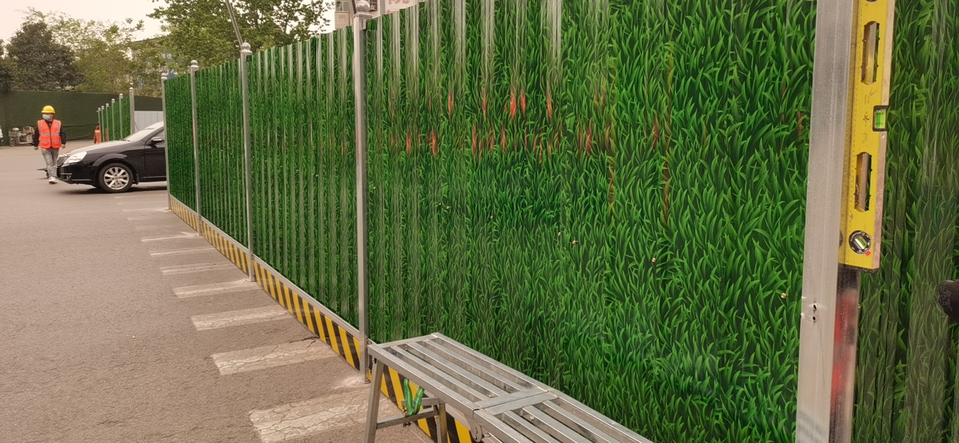 宜陽縣錦屏路改造項(xiàng)目安裝小草彩鋼圍擋