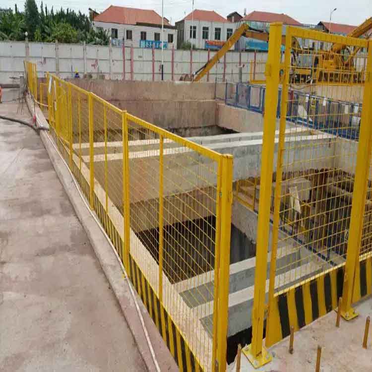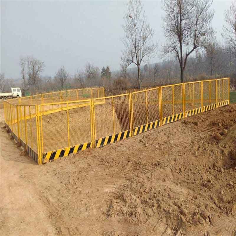 工地基坑圍擋由防護網(wǎng)片和立柱組成?;訃鷵踔饕蚣苡?0mm×30mm方管焊接組成,單片尺寸1.18米×1.85米,安裝好以后的尺寸是1.2米x2.0米,基坑護欄連接位置用Φ10螺栓與立柱連接固定,跨耳與上下邊緣距離為15cm,立柱采用50mm方管,高度1.2m,底部有法蘭(5.0mm×15cm×15cm鋼板)每個法蘭盤設(shè)4個螺栓孔、頂部封閉,與地面用Φ14膨脹螺栓固定。